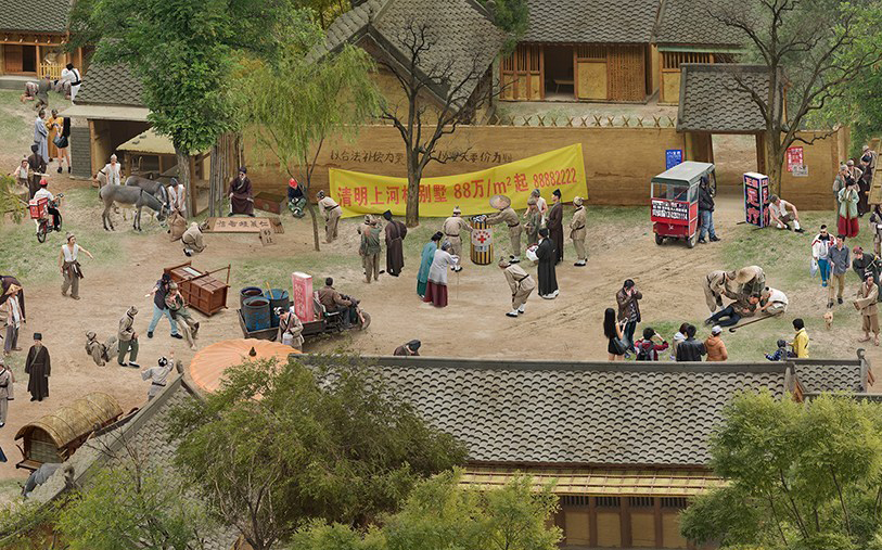 “新清明上河图”摄影师戴翔利用模型背景,然后由自己主要扮演几百个原图中的角色。他将张择端的《清明上河图》这个古老的文化符号作为基本背景,植入了当下历史现实中各种“中国事件”,于是一个历史的中国与当下的中国产生强烈的符号碰撞。戴翔表示,他并非有意拼接社会“黑暗面”,而是想以这种方式引发思考并推动社会进步。