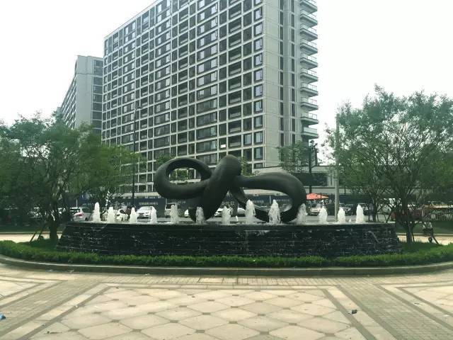 在西区门前,以“和”字为造型基础,立了一个雕塑,状似“和”字,又似母亲的怀抱,寓意着余杭塘河永恒的守护。