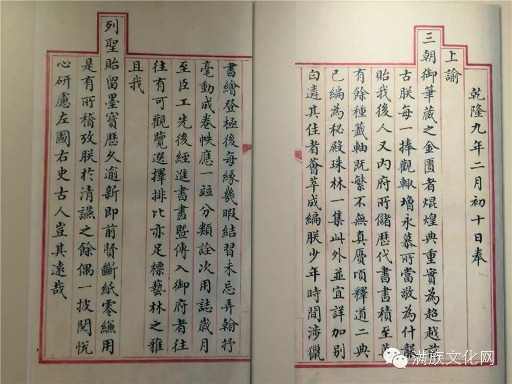 展厅内关于《石渠宝笈初编》乾隆上谕的展板,乾隆在这份上谕中讲述了自己对这些书画的珍爱,以及编纂这部著录的意义